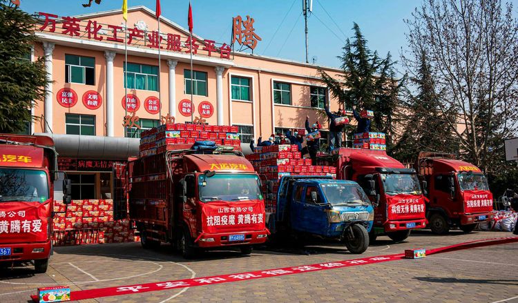 2020年2月20日,飽含山西黃騰化工有限公司助陣抗阻疫魔真情、滿載向抗疫一線英雄致敬愛意的捐贈慰問在萬榮縣溫馨而有序的進(jìn)行。這是黃騰公司董事局主席孫克儉、董事長孫肖武第五次擔(dān)當(dāng)?shù)懒x、助力抗疫的善舉。他們把4000箱蘋果, 1500箱水果罐頭, 1000箱麻花, 20000斤新鮮蔬菜,總價值40余萬元的慰問品,送到抗疫一線和萬榮奔赴武漢狙疫最前沿的9名醫(yī)護(hù)人員的親人手中。另特為抗疫一線的公安干警捐贈慰問金50000元。武漢加油!萬榮加油!黃騰加油!中國加油!是黃騰人的心聲!在他們的感召下,黃騰62名員工積極奉獻(xiàn)愛心,自發(fā)捐資20490元,助陣抗疫。