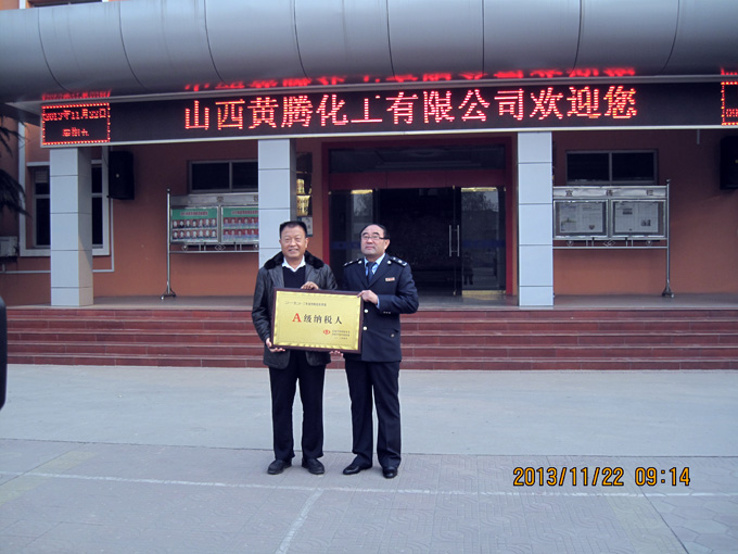 山西黃騰化工有限公司,勵(lì)精圖治,深入挖潛,細(xì)化服務(wù),終于厚積薄發(fā),管理又上新臺(tái)階。繼國(guó)家高新技術(shù)企業(yè)授匾,鐵道總公司CRCC認(rèn)證通過(guò)之后,近日我公司又被授予《山西省模范納稅A級(jí)企業(yè)》。