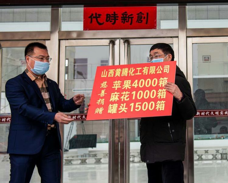 2020年2月20日,飽含山西黃騰化工有限公司助陣抗阻疫魔真情、滿載向抗疫一線英雄致敬愛意的捐贈慰問在萬榮縣溫馨而有序的進(jìn)行。這是黃騰公司董事局主席孫克儉、董事長孫肖武第五次擔(dān)當(dāng)?shù)懒x、助力抗疫的善舉。他們把4000箱蘋果, 1500箱水果罐頭, 1000箱麻花, 20000斤新鮮蔬菜,總價值40余萬元的慰問品,送到抗疫一線和萬榮奔赴武漢狙疫最前沿的9名醫(yī)護(hù)人員的親人手中。另特為抗疫一線的公安干警捐贈慰問金50000元。武漢加油!萬榮加油!黃騰加油!中國加油!是黃騰人的心聲!在他們的感召下,黃騰62名員工積極奉獻(xiàn)愛心,自發(fā)捐資20490元,助陣抗疫。