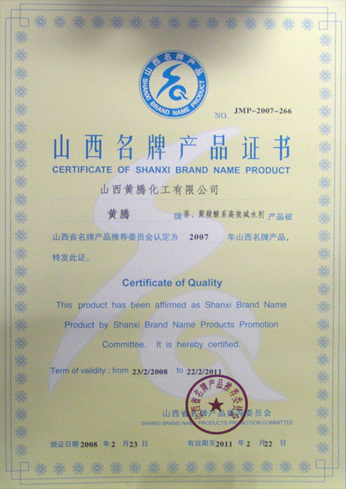 山西名牌產(chǎn)品證書