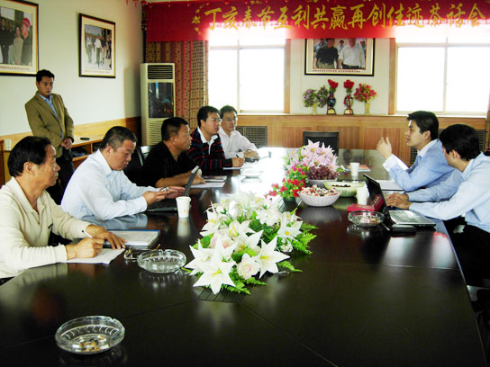 黃騰公司董事長、總經(jīng)理、總會計(jì)師向考察團(tuán)匯報(bào)公司經(jīng)營情況